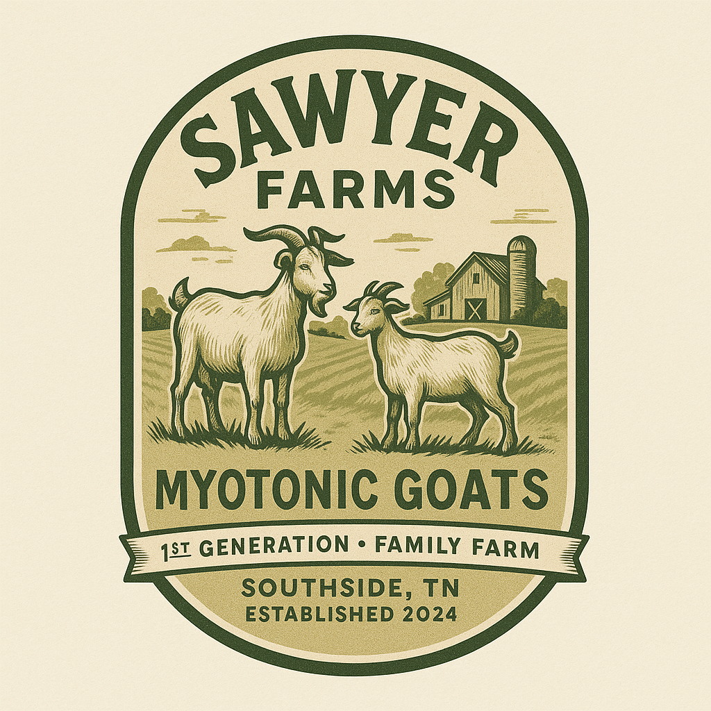 We chose Myotonic “Tennessee Fainting” goats for their temperament and health in our environment. All of our goats can be traced back to the Middle Tennessee area.